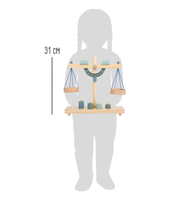 Aus Massivholz gefertigt und mit vier lackierten Gewichten ein unverzichtbarer Bestandteil für kleine Kaufleute! Auf dem Balken sind zwei schiebbare Ausgleichsgewichte zum Justieren der Waage – so wird jeder Wiegevorgang zum „Handwerk“!