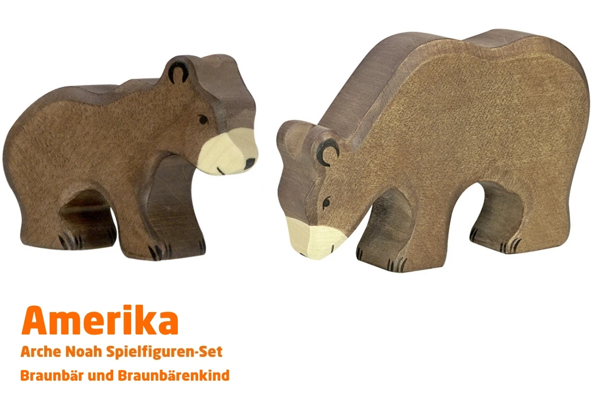 Braunbär und kleiner Braunbär | Amerika 1 Tier-Paket | Arche Spielfiguren | Holztiger | 80184+80185