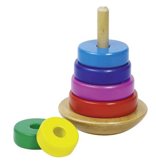 Schnelles Erlernen von Farben, Formen und Gleichgewicht mit der Holzpyramide für Kinder