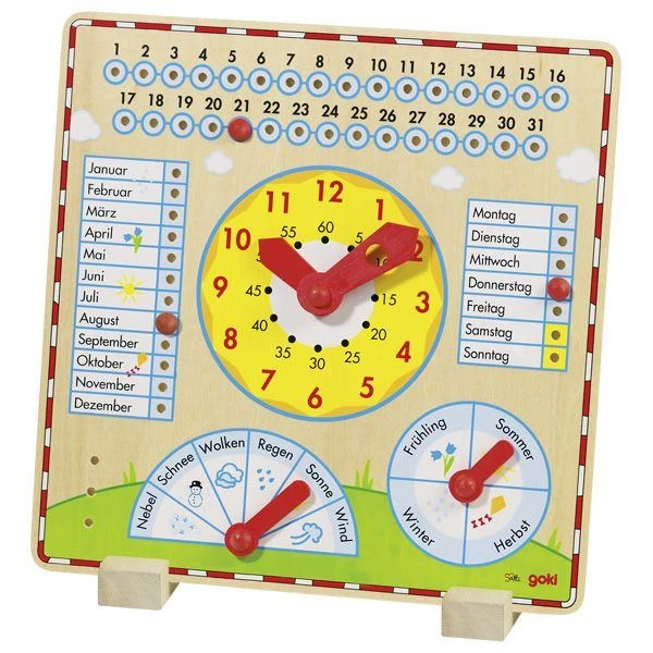 Tolle Lernuhr im bunten Farben kann der Wochentag mit Datum, Jahreszeit und das Wetter angezeigt werden.Mit der verstellbaren Uhr lassen sich nicht nur Uhrzeiten mit Stunde und Minuten ablesen,sondern auch die Tageszeiten Morgens , Mittag und Abend