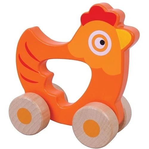 Dieses niedlich gestalte Hand-Schiebetier, das Huhn, fördert die Wahrnehmung, die Hand-Auge-Koordination und die Motorik.