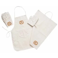 Jetzt kann Ihr Kind endlich in der Küche wie ein echter kleiner Koch brillieren. Mit dem 4-teiligen Küchenset ist der junge Koch bereit, in der Küche Platz zu nehmen und zu zeigen, was er gekocht oder gebacken hat. Die Kochkleidung ist handgenäht mit einer süßen kleinen Brezel aufgedruckt und hält jahrelangem Tragen stand. Dieses Kochschürzen-Set für Kinder regt zum kreativen Spielen an.
