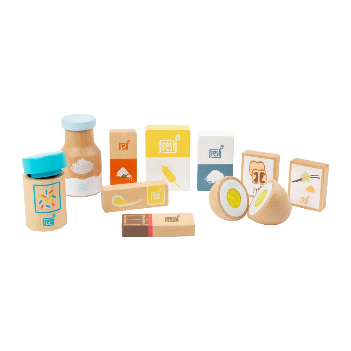 Der fertige Kuchen kann nach dem Backen mit der Schokolade und den Streuseln verziert werden. In produkttypischen Farben gehalten und mit leicht verständlichen Bildern versehen, sind diese Zutaten die idealen Zubehörartikel für die Kinderküche oder den Kaufmannsladen. Das Set ist außerdem sehr vielseitig einsetzbar. Ob als Dekoration für den Kinderkaufladen oder als Ergänzung für die Spielküche – die Sahne und der Vanillezucker machen sich überall gut und sorgen für stundenlangen Spielspaß.
