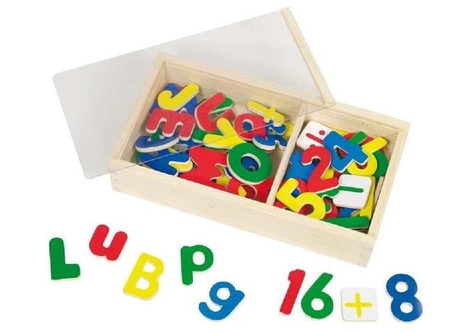 Lernspielzeug aus Holz. Lesen und Rechnen lernen wird zum Kinderspiel. Mit diesem tollen Set können Ihre Kinder lesen und rechnen lernen. Die Zahlen und die Buchstaben sind magnetisch und halten auf gängigen Magnet-Oberflächen. Nach dem Spielen können die Teile wieder in die Holzbox sortiert werden. Das Set besteht aus 89 Teilen.