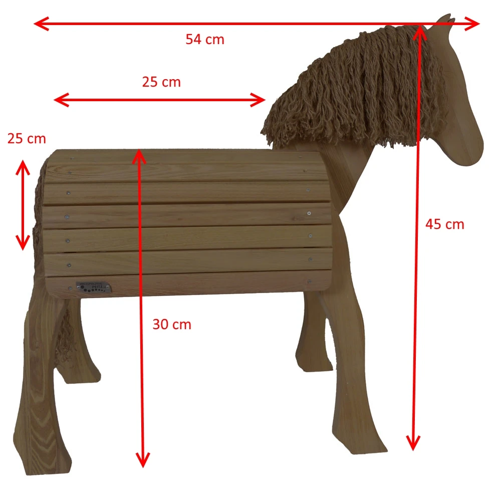 Sitzfläche des kleinen Schaukelpferdes: ca. B: 220 mm | T: 250 mm | Höhe: 360 mm