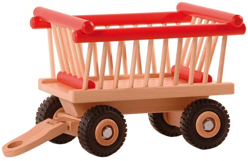 Die vordere Achse ist lenkbar. Zubhör für den Bauernhof zum Spielen!