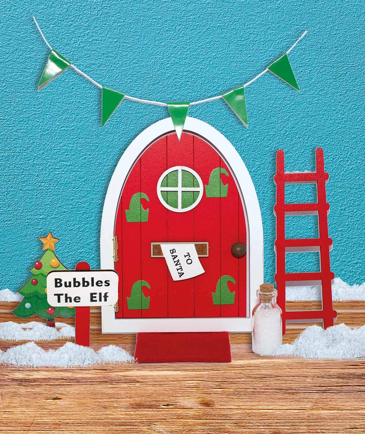 - inklusive Tür, Fußmatte, Leiter, Weihnachtsbaum, Schild, Girlande, Flasche und Klebepads